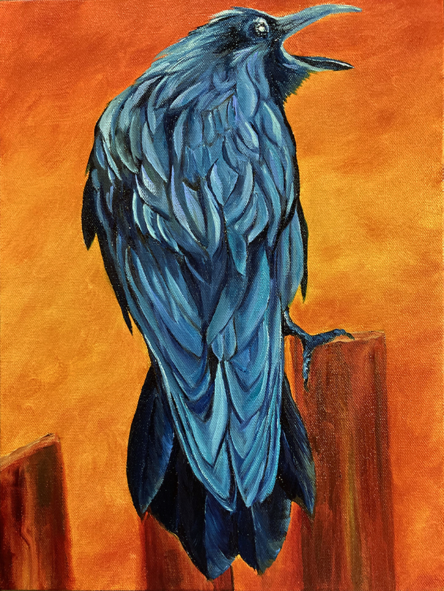 Raven Perching - 12x16 Inch Oil on Canvas