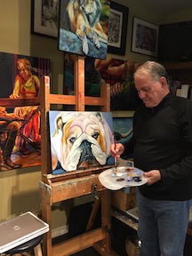 - Back in 1980, when I was in College, I put myself though school selling pen and ink prints of the local pubs at Texas A&M University. During graduation ceremonies, the students would walk by my booth and beg their parents to buy one of my prints while kiddingly explaining that they would spend more time at Dudley’s and the Dixie Chicken than they did in classes! Though my commercial career as an artist began while chasing my college degree, I feel I’ve been creative all of my life. Carving wood decoys, creating graphic web-site images, playing music and making homemade wine all became a significant part of my creative lifestyle. In painting, I originally worked with graphite and ink mediums, but began to work in color after years of travel and creating a direction I wanted to develop. I enjoy painting wildlife because my observation of animals challenges me to explore their essence through color. In my current oil paintings, I’ve found that everything becomes a passionate response to the canvas. I use a unique approach in my oil paintings and use bright expressive color and exaggerated brush strokes. As an artist I am also influenced by painters, Andree Hudson, Jeff Hamm, John Nieto and, Jill Pankey. My paintings are meant to capture my subjects with spontaneity, exploration and personal expression. I am often asked how long it takes me to paint one of my paintings, and always answer with the response I’ve learned from my mentor, “All My Life!”